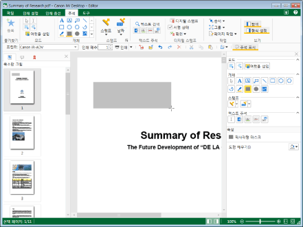 또한 이 작업은 도구 모음의 도구 버튼들을 이용해 수행할 수도 있습니다. Desktop Editor의 도구 모음에 도구 버튼들이 표시되지 않는다면 아래의 방법에 따라 표시할 수 있습니다.