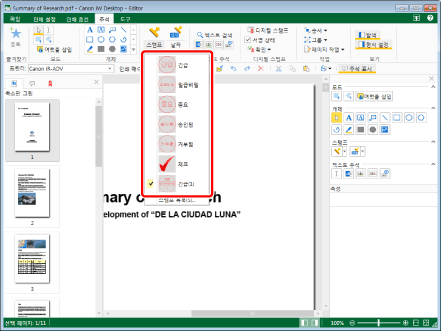 사용자가 등록한 스탬프들을 편집할 수 있습니다. 자세한 내용은 다음을 참조하십시오.