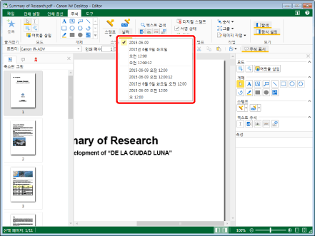 클릭하면 [날짜 및 시간 편집] 대화 상자가 표시됩니다. [날짜 및 시간 편집] 대화 상자에서 날짜 표시 형식을 편집할 수 있습니다. 자세한 내용은 다음을 참조하십시오.