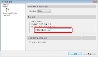 컴퓨터에 로그인한 사용자 이름을 사용하려면 [시스템 설정]에서 [로그인 사용자 이름 사용]을 선택합니다.