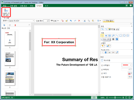 또한 이 작업은 도구 모음의 도구 버튼들을 이용해 수행할 수도 있습니다. Desktop Editor의 도구 모음에 도구 버튼들이 표시되지 않는다면 아래의 방법에 따라 표시할 수 있습니다.