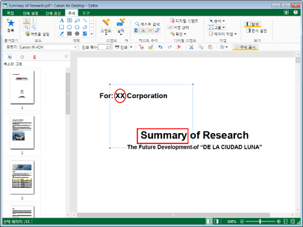 클릭한 곳이 텍스트 편집 영역인 경우 주석이 선택되고 텍스트를 입력할 수 있게 됩니다.