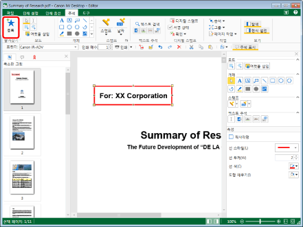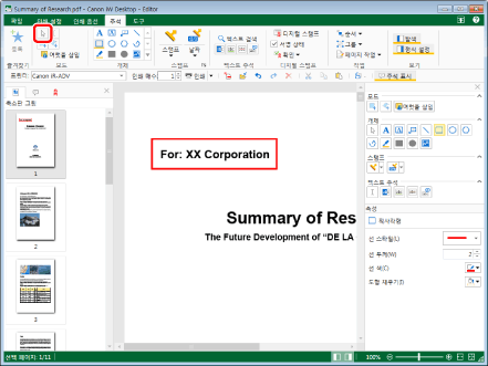 즐겨찾기 버튼으로 삽입할 때, 주석이 등록된 위치와 동일한 위치에 삽입되어 주석을 삽입할 위치를 지정할 수 없습니다. 주석 삽입 위치를 조정하려면 주석을 삽입한 후 조정합니다.