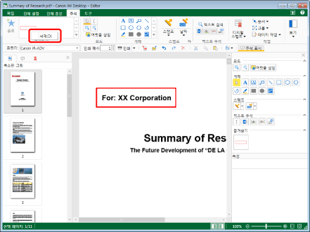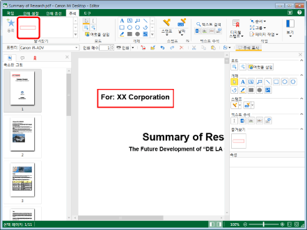 또한 이 작업은 도구 모음의 도구 버튼들을 이용해 수행할 수도 있습니다. Desktop Editor의 도구 모음에 도구 버튼들이 표시되지 않는다면 아래의 방법에 따라 표시할 수 있습니다.