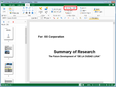 디지털 스탬프 모드가 동작하는 상태에서는 주석을 선택 또는 편집할 수 없습니다.