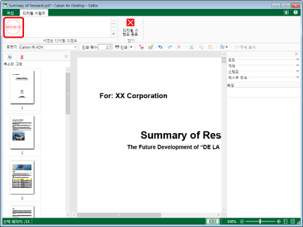 디지털 스탬프 모드가 동작하는 동안 탐색 창의 [주석 목록] 탭이 숨겨집니다.