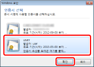 (디지털 스탬프 종료)를 클릭하는 경우, 디지털 스탬프 붙여넣기를 끝내고 싶은지를 확인하는 메시지가 표시됩니다.[예]를 클릭하는 경우: [인증서 선택] 대화 상자가 표시됩니다.