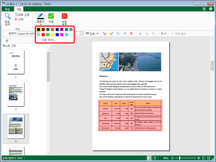 페이지 영역 밖에서는 영역 표시를 시작할 수 없습니다. 그러나 페이지 영역 밖에서도 영역 표시를 마칠 수 있습니다. 페이지 영역 외부에서 영역 표시를 완료하면 페이지 외부에 표시된 영역도 옅은 빨간색으로 강조 표시됩니다.