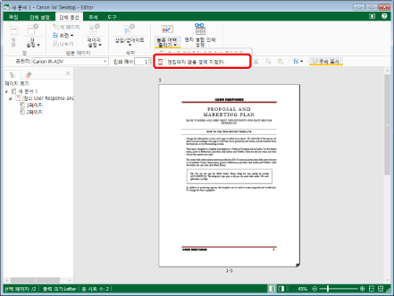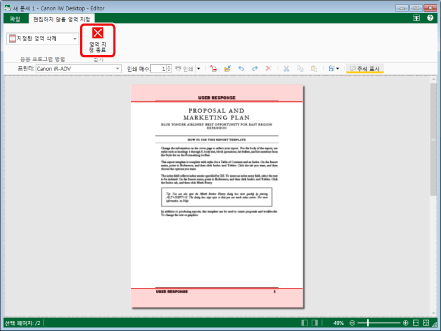 편집을 수행할 수 없는 영역은 페이지별로 설정할 수 없습니다. 문서별로 설정됩니다.