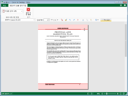 편집을 수행할 수 없는 지정된 영역 내에 표시되는 동일한 개체를 포함하는 페이지에서 편집을 수행할 수 없는 영역은 회색으로 표시됩니다.