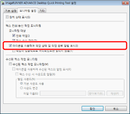 장치 상태 아이콘은 Quick Printing Tool에서 설정된 프린터/팩스의 작업 상태를 표시합니다. 장치 상태 아이콘 및 완료 메시지에 대한 자세한 내용은 다음을 참조하십시오.