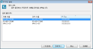 목록에서 모니터링할 장치를 선택하려면 클릭합니다. [다음]을 두 번 클릭하면 [IP 주소 설정] 대화 상자의 [장치 정보 설정]이 표시됩니다.