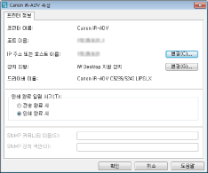 인쇄 완료를 알리는 시간을 변경할 수 있습니다. [장치 유형]이 [기타 LPR 장치]이거나 비워둔 경우 설정할 수 없습니다.