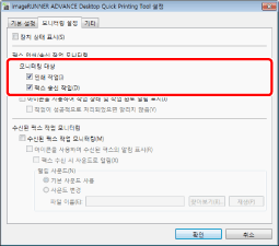 [imageRUNNER ADVANCE Desktop Quick Printing Tool 설정] 대화 상자에 대한 자세한 내용은 다음을 참조하십시오.