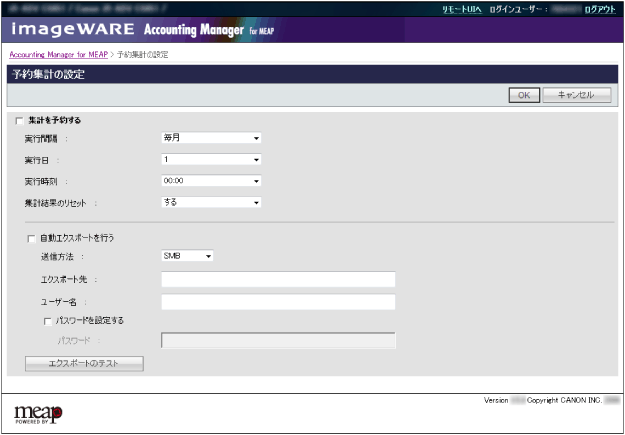[ジョブ履歴および集計結果をAccounting Manager for MEAP Version 2.2.0の形式でエクスポート]