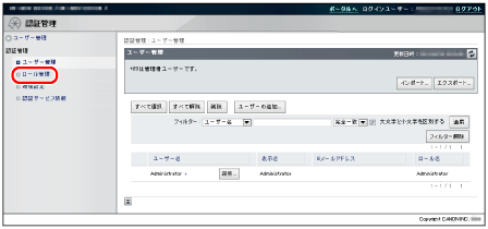 ユーザーへのロールの関連付けは、ユーザー管理画面から行います。詳細は、デバイスに付属の取扱説明書を参照してください。