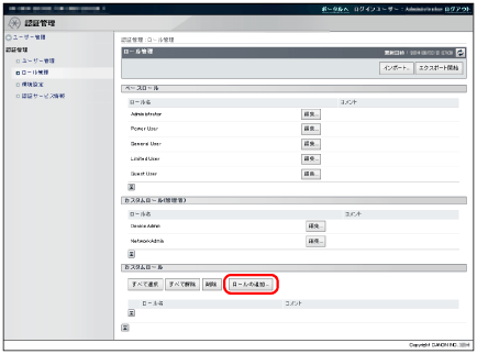 ベースロールおよびカスタムロール(管理者)は削除できません。