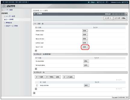 [Guest User]ロールを編集したら、バックアップのためエクスポートしておくことをおすすめします。詳細は、「ロールをエクスポートする」を参照してください。