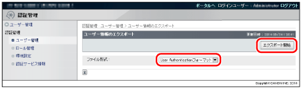 [User Authenticationフォーマット]が選択されていることを確認し、[エクスポート開始]をクリックします。