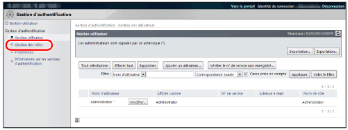 Il est possible de définir si [Administrator] est réglé pour [Rôles de base].