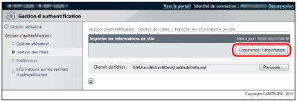 Si l'importation des paramètres de rôles échoue, les données initiales (celles présentes sur le périphérique avant l'opération d'importation) sont restaurées.