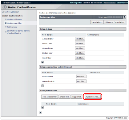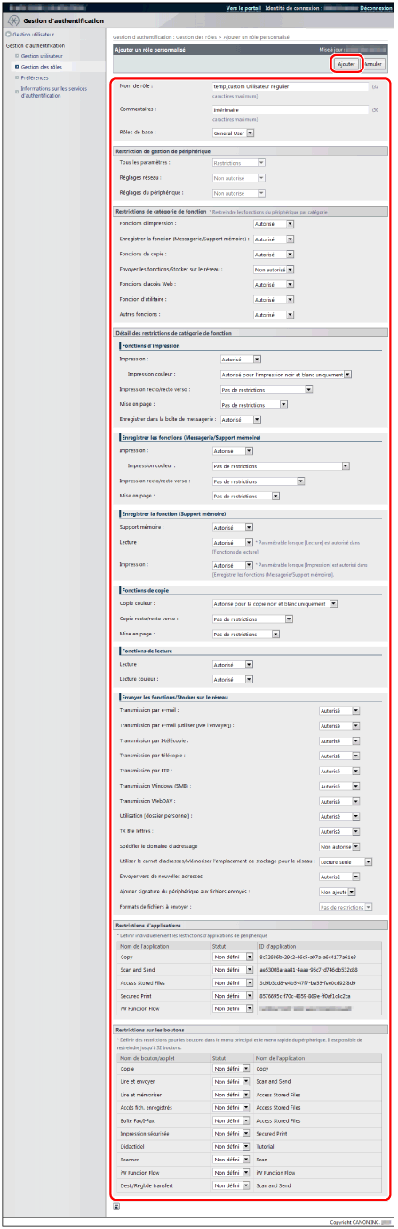 [Impression couleur] sous [Fonctions d'impression], dans [Détail des restrictions de catégorie de fonction]
