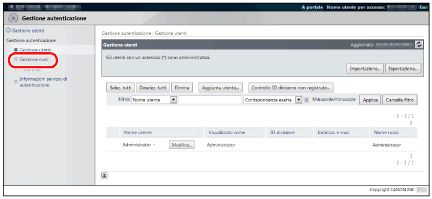 Associare i ruoli agli utenti nella schermata [Gestione utenti]. Per ulteriori informazioni, consultare i manuali di istruzioni della periferica.