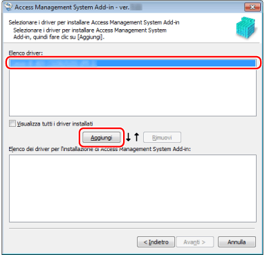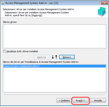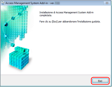 Prima di installare AMS Printer Driver Add-in, è necessario accertarsi che la configurazione di Access Management System sia stata completata. Per ulteriori informazioni, consultare "Configurazione di Access Management System".