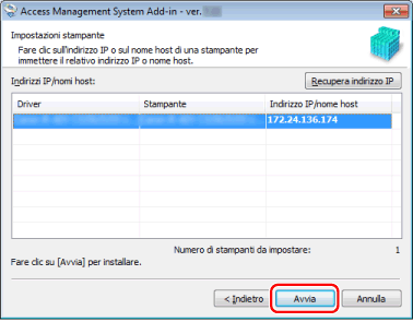 Nel caso più stampanti che utilizzano lo stesso driver della stampante siano collegate alla rete, tutte queste stampanti saranno visualizzate in [Indirizzi IP/nomi host].