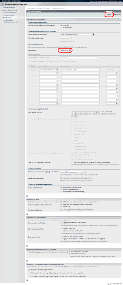 Die Einstellung [Standardrolle einstellen] ist nach dem Neustart des Geräts aktiviert. Informationen zum Neustarten des Geräts finden Sie in den Bedienungsanleitungen zum Gerät.