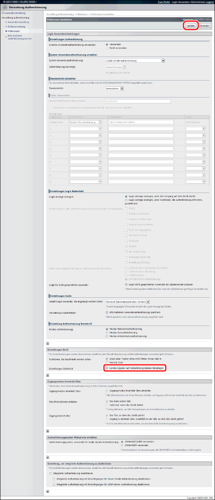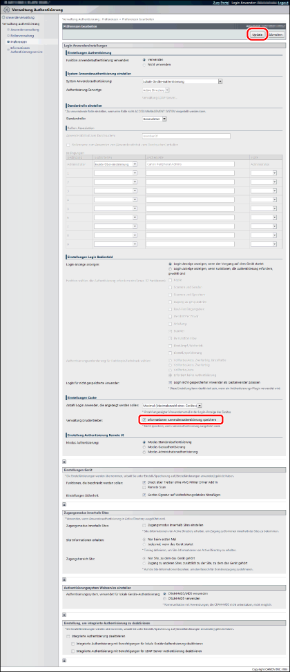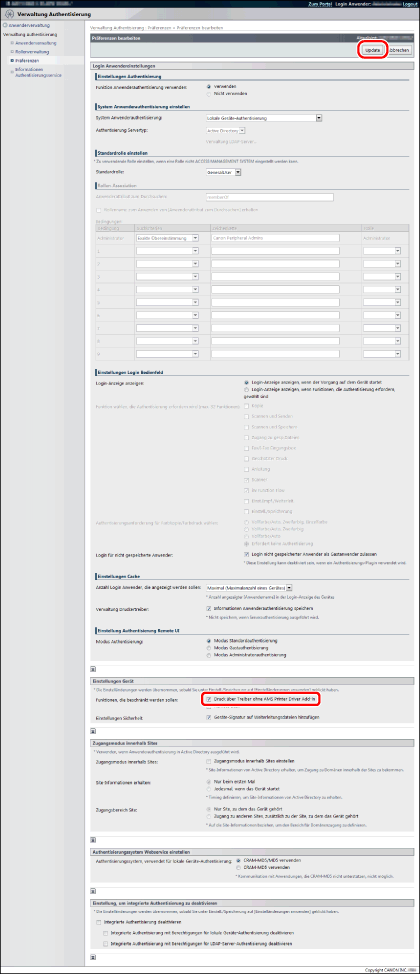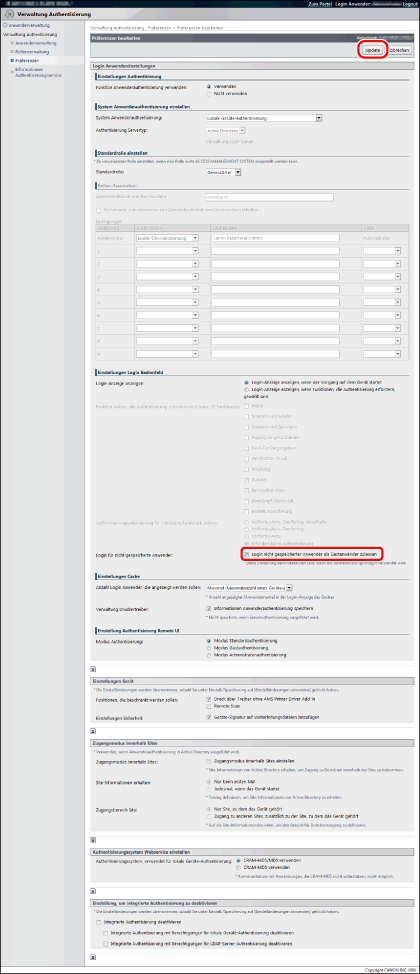 Die Einstellung [Login für nicht gespeicherte Anwender] ist nach dem Neustart des Geräts aktiviert. Informationen zum Neustarten des Geräts finden Sie in den Bedienungsanleitungen zu dem Gerät.
