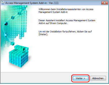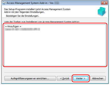 Vor dem Installieren des AMS Printer Driver Add-in müssen Sie prüfen, ob das Access Management System komplett eingerichtet ist. Weitere Informationen dazu finden Sie unter "Einrichten des Access Management System".