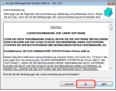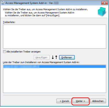 Wenn AMS Printer Driver Add-in V1.x installiert ist, deinstallieren Sie es mit dem Deinstallationsprogramm der Version 1.x, und aktualisieren Sie dann den Druckertreiber. Weitere Informationen dazu finden Sie unter "Deinstallieren des AMS Printer Driver Add-in". Wenn AMS Printer Driver Add-in V2.0 oder höher installiert ist, können Sie den Druckertreiber ohne Deinstallation des Add-Ins aktualisieren.
