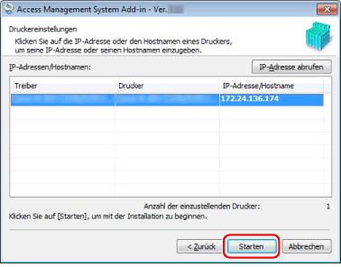 Wenn mehrere Drucker, die denselben Druckertreiber verwenden, mit dem Netzwerk verbunden sind, werden alle diese Drucker in [IP-Adressen/Hostnamen] angezeigt.
