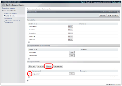 Los roles básicos y los roles personalizados (administrador) no pueden eliminarse.