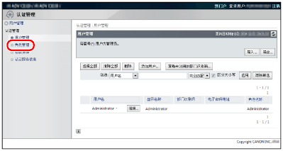 关联角色至[用户管理]屏幕上的用户。有关详细信息,请参阅设备的说明手册。