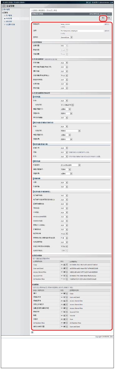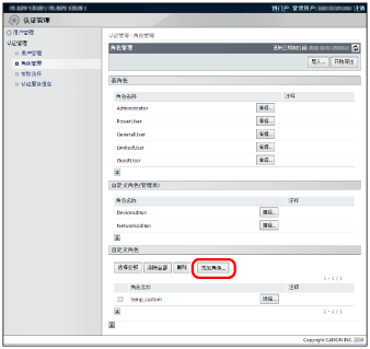 可注册最多100个角色,包括“基角色”和“自定义角色 ”(管理员)。