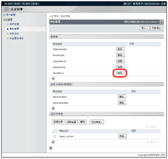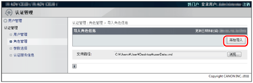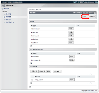 如果要导入角色的名称已存在,已有的角色会被导入角色信息覆盖。但是,对于来宾角色和自定义角色(管理员)以外的基角色,只覆盖注释。
