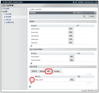 要更改[基角色]设置(从而更改设备管理权限),需删除该角色并重新注册。(也可导出该角色并通过在文本编辑器中对其进行编辑来更改[基角色]设置。不过在此过程中需注意不要编辑控制字符。)