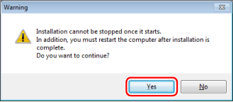 当显示信息确认您是否想要开始安装时,单击[Yes]。