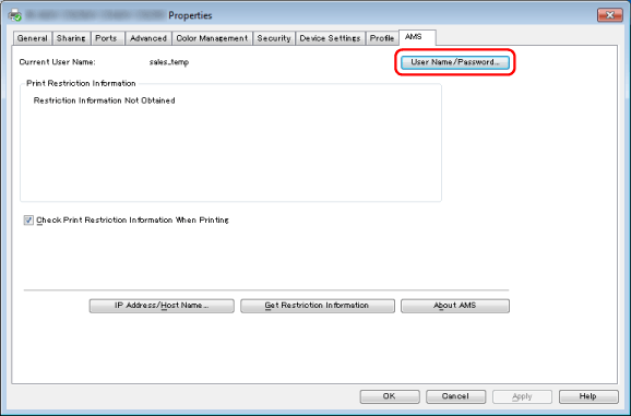 设置用户信息至 AMS Printer Driver Add-in