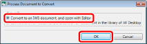 If [Convert to a PDF document, and save a PDF document in the library of iW Desktop] is selected in [System Settings], the document is saved in Desktop Browser without being imported to Desktop Editor. For more information, see the following.