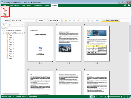 When you overwrite an existing document using the PDF export process, depending on the access rights (Windows) to the existing document, the document to be overwritten may disappear after an error message is displayed. In this case, perform the PDF export process again.