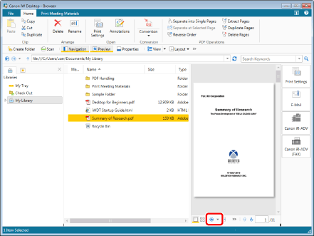 If you want to specify the magnification factor, enter it directly into [Zoom]. You can enter the magnification factor in 1% increments. If you enter a value greater than the upper limit or smaller than the lower limit, pages are automatically displayed at the available magnification factor closest to the value you specified (if a value other than an integer is entered, the previous value is restored).