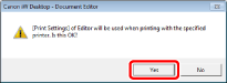If you change the name of the printer registered in a printer output button on the Windows printer properties screen, you will not be able to print a document using the printer output button.