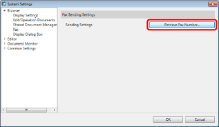 [System Settings] > [Browser] > [Fax] > [Retrieve Fax Number]