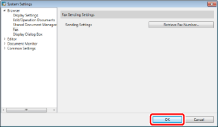 Click [OK] to close to the [Retrieve Fax Number] dialog box.