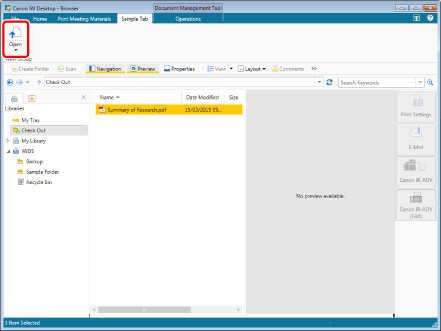 Select a document in the File List View Window, and click for (Open) on the ribbon.