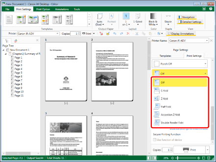 If you configure folding when an output paper size that does not support folding is selected, the output paper size switches to a paper size that supports folding.