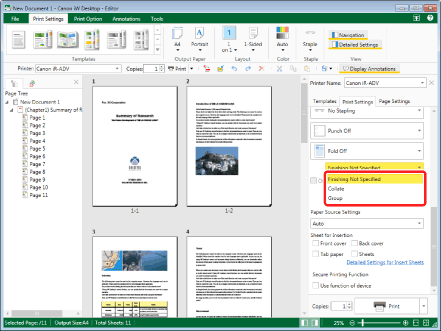 Can only be selected when a finisher is attached to the printer.